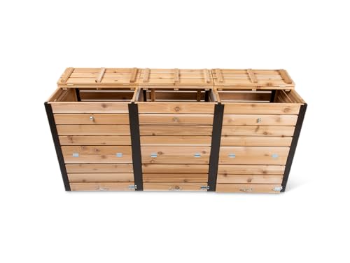Gardener's Supply Company Cedar 3 Bin Composter | Heavy Duty Cedar Outdoor Composter with Aluminum Corners & Steel Handles | Holds 330 Gallons Designed for Good Aeration | Best for Backyard Garden