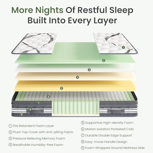 Yaak Queen Mattress, 10 Inch Queen Size Mattress in a Box, Individual Pocket Spring Hybrid Mattress with Breathable Memory Foam, Motion Isolation, Medium Firm Queen Bed Mattress 80"x60"x10"
