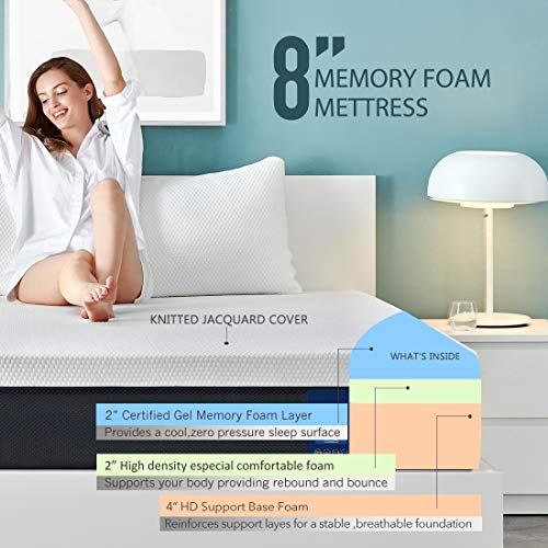 Molblly Queen Size Mattress, 8 Inch Premium Cooling-Gel Memory Foam Mattress Bed in a Box, Cool Queen Bed Supportive & Pressure Relief with Breathable Soft Fabric Cover, Medium Firm